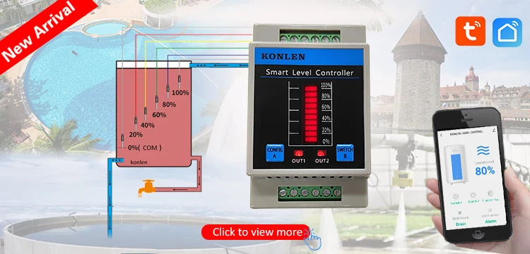 It is a KONLEN WIFI intelligent water level controller, which can be set by APP to realize water level monitoring, Water supplement or drainage, high and low water level remote APP push alarm notification etc,.