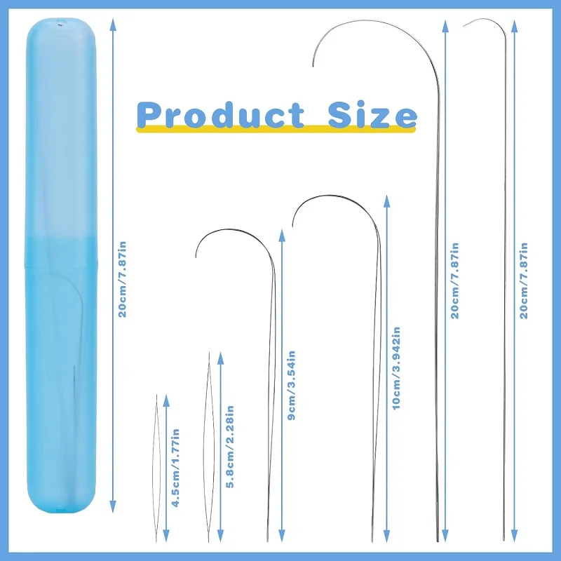 1) Beading Needles Set: The beading needle set includes big eye beading needles*2,Large Eye Curved Beading Needles*2, Curved Beading Needles*2 ,blue needle bottles*1