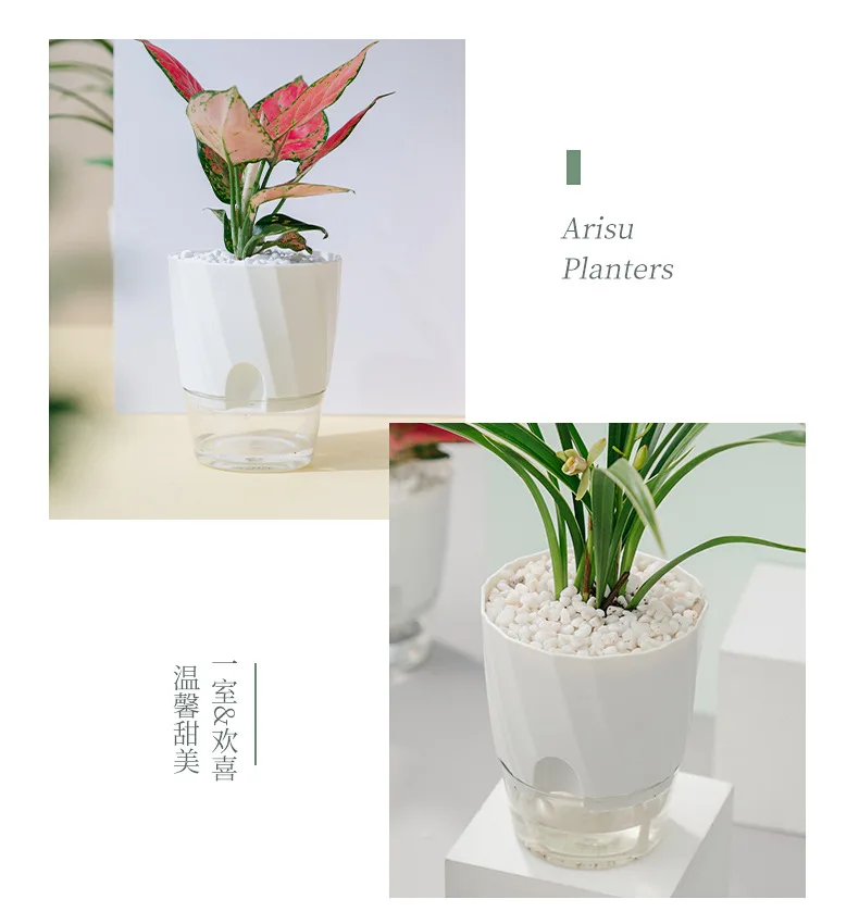 Lazy Hydroponic Flower Pot Automatic Water-Absorbing Flowerpot Transparent Double Layer Plastic Self Watering Planter Office