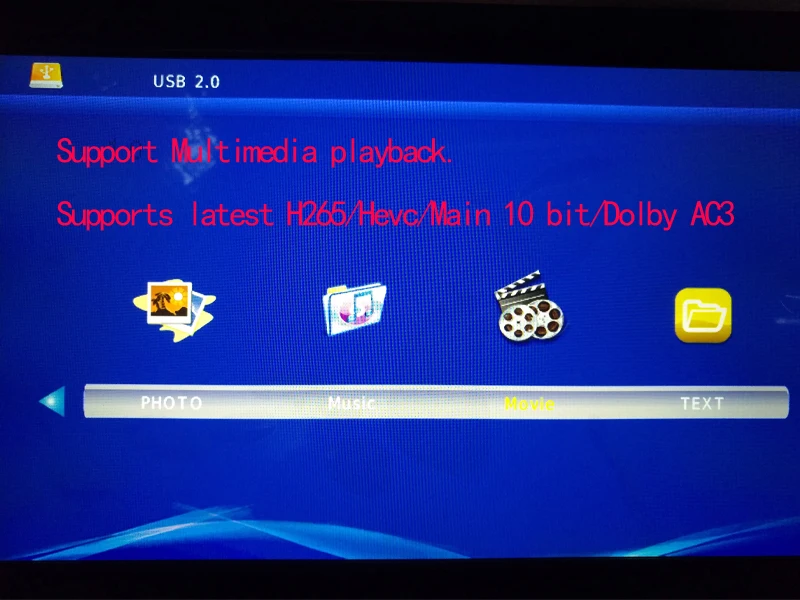 RMVB/AVI/MPEG/MKV/MOV 1080P video, MP3/WMA music.