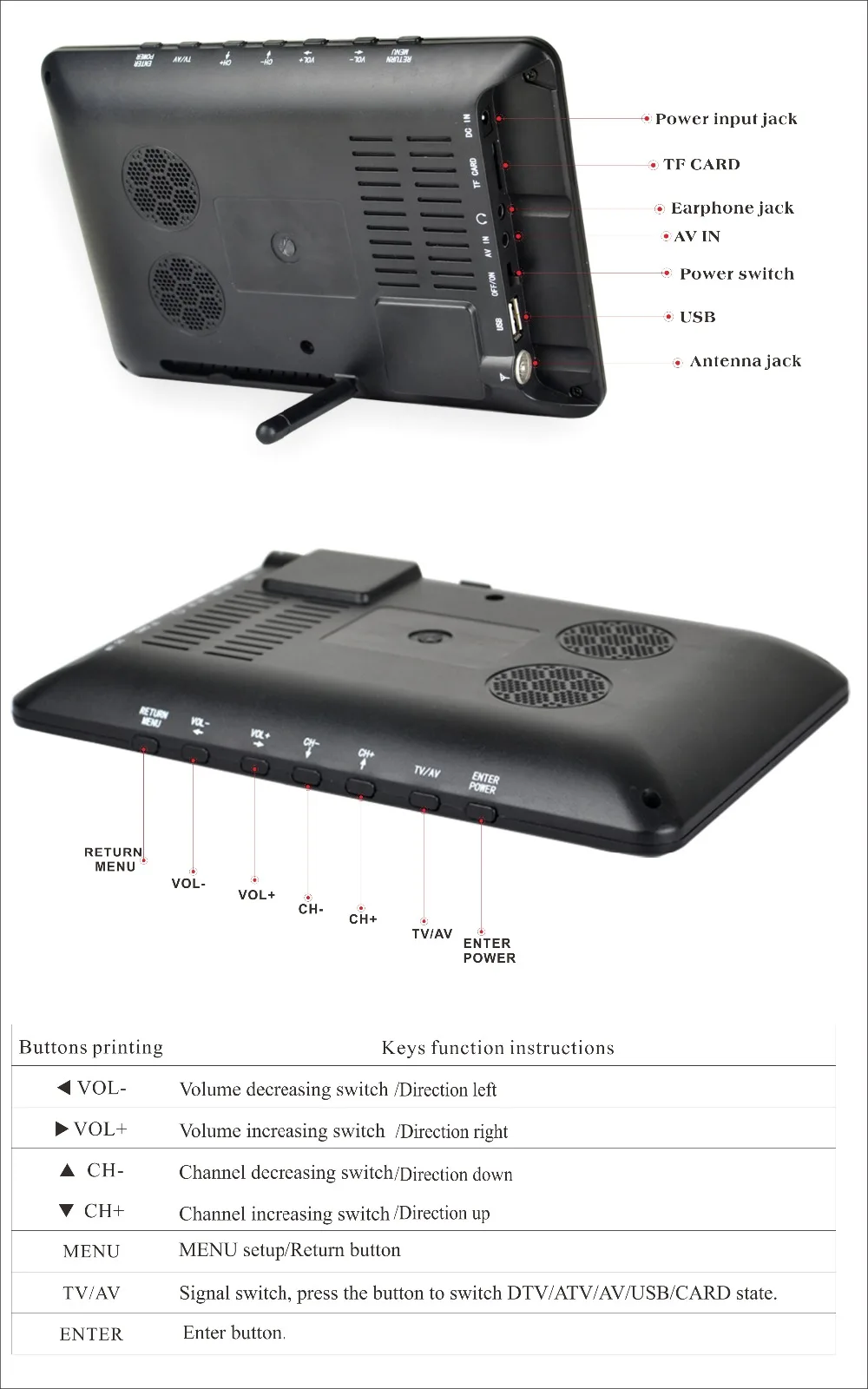 LEADSTAR 7 inch Portable Mini Tv Full Compatible With ISDB-T H265/Hevc DVB-T/H264 Dolby Ac3 800×480 Support TF Card USB