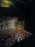 LED Solar Lantern Light Hollow Wrought Iron Projection Light Hanging Lamps Outdoor Waterproof Yard Garden Art Decoration