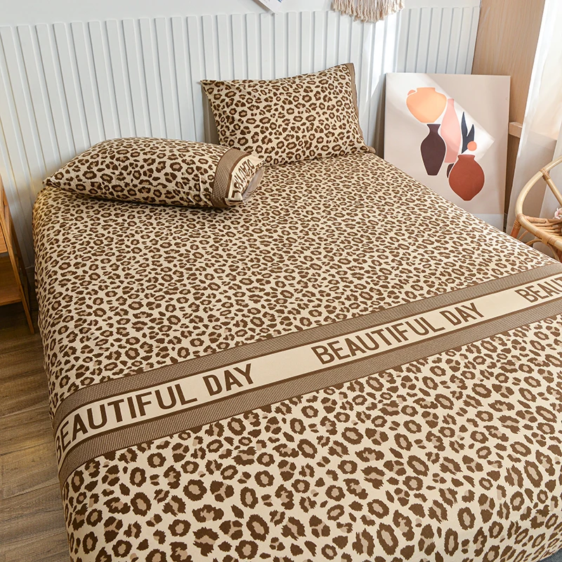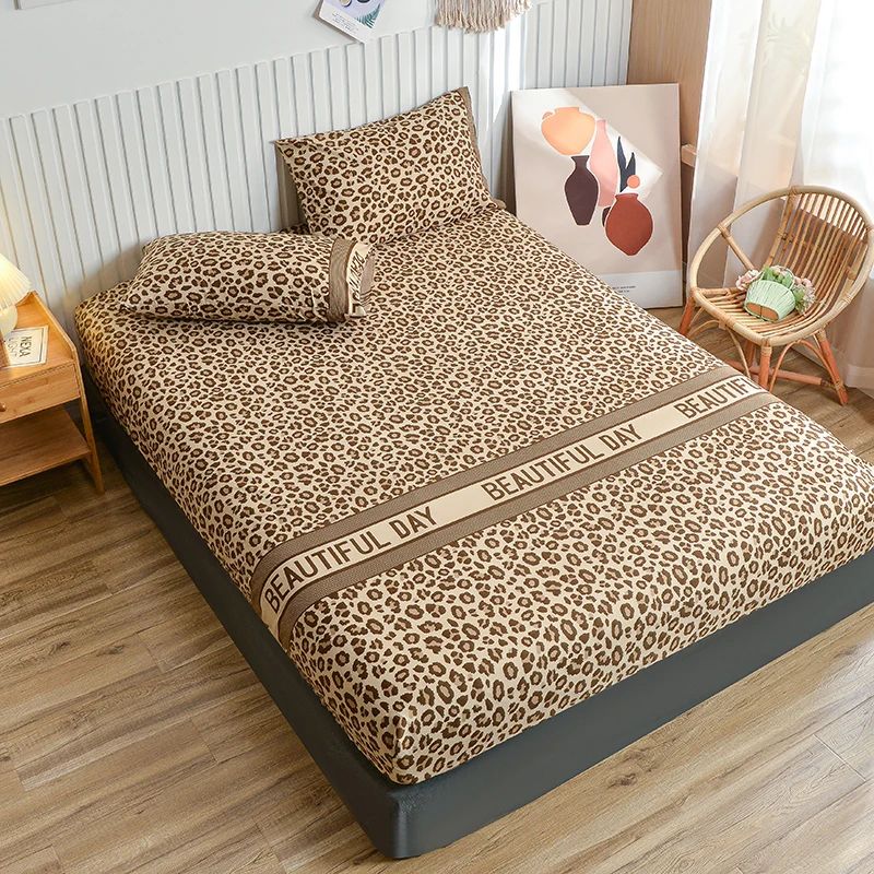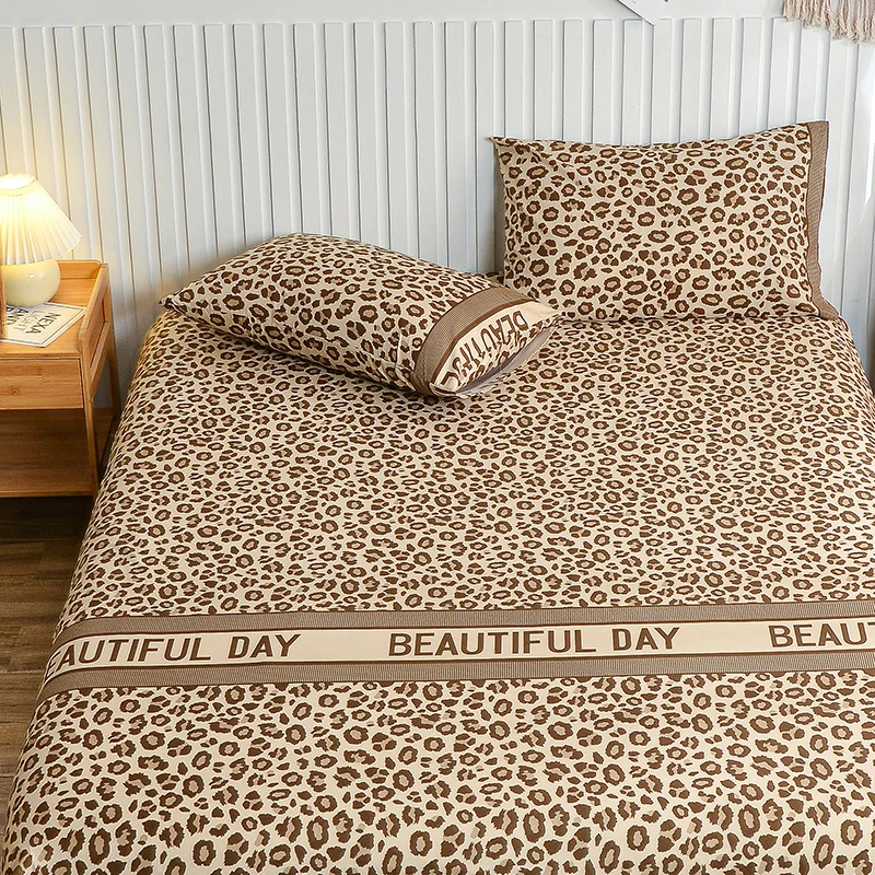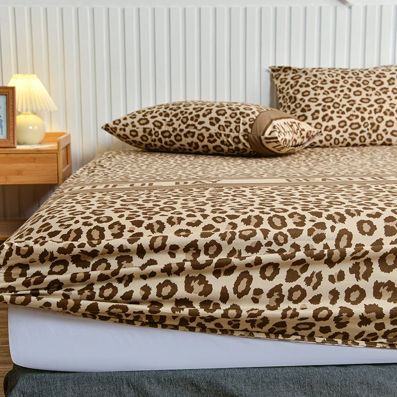 Leopard Print Fitted Sheet Wild Animal Cheetah Skin Texture Bed Cover Romantic Fashion Bed Sheet Set with 2 Pillowcase Twin King