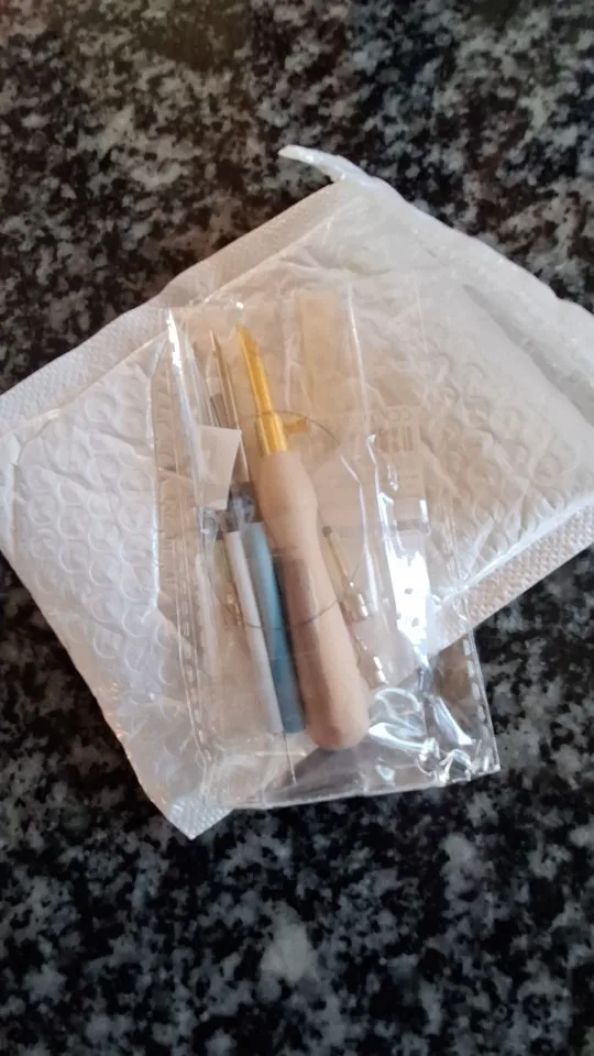 It arrived well and it is like the description, the wooden one is adjustable the needle I thought it was big but that way small is comfortable
