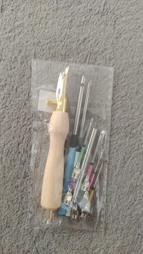 Size: wooden handle punch needle-11.4cm, white&blue needle-10.1cm, tube-5.6cm, needle-4.7cm