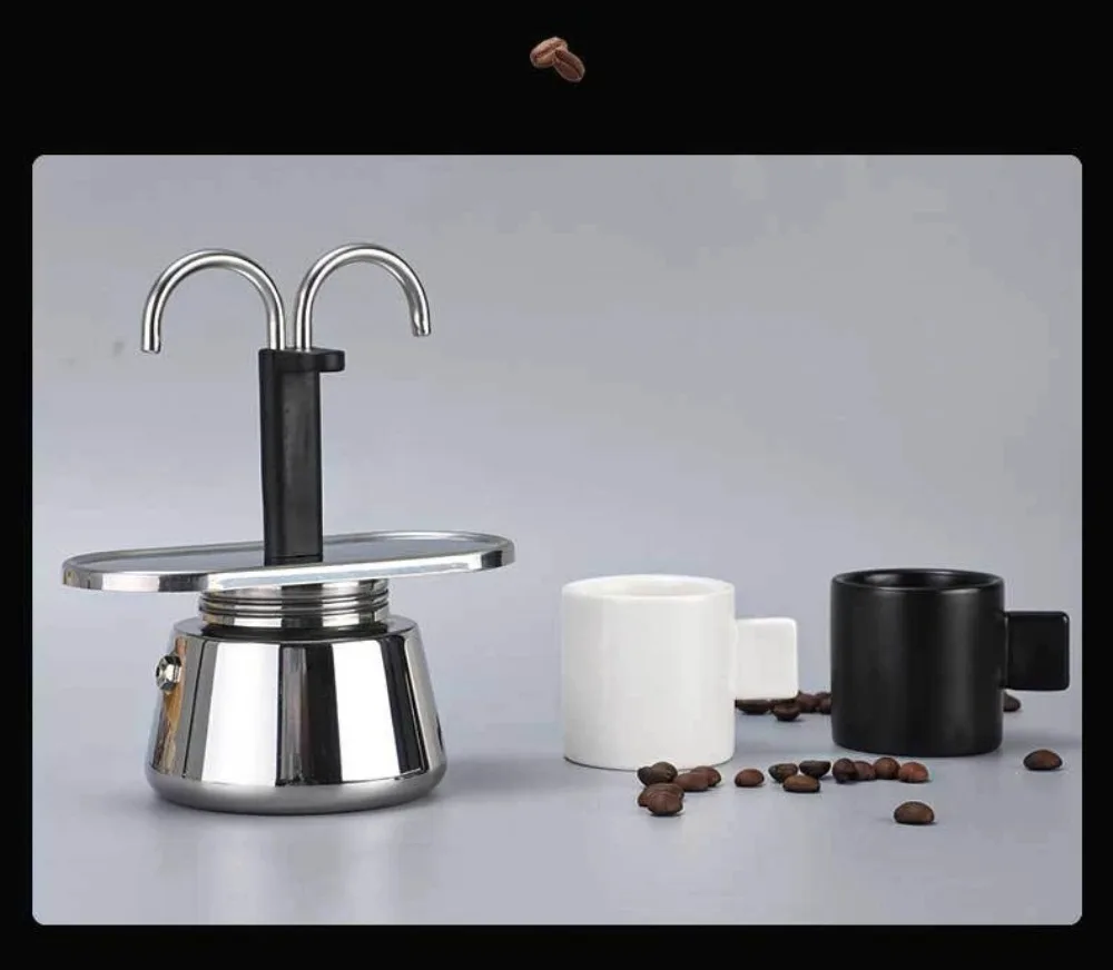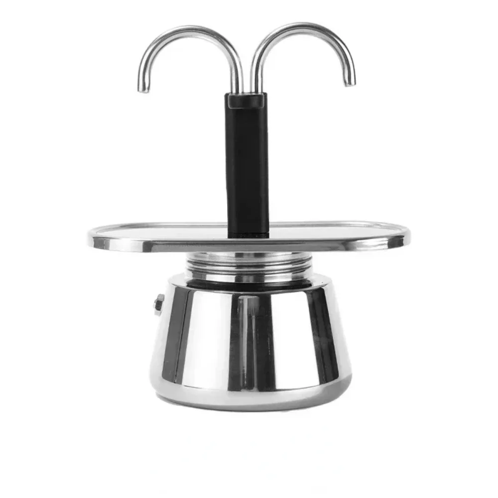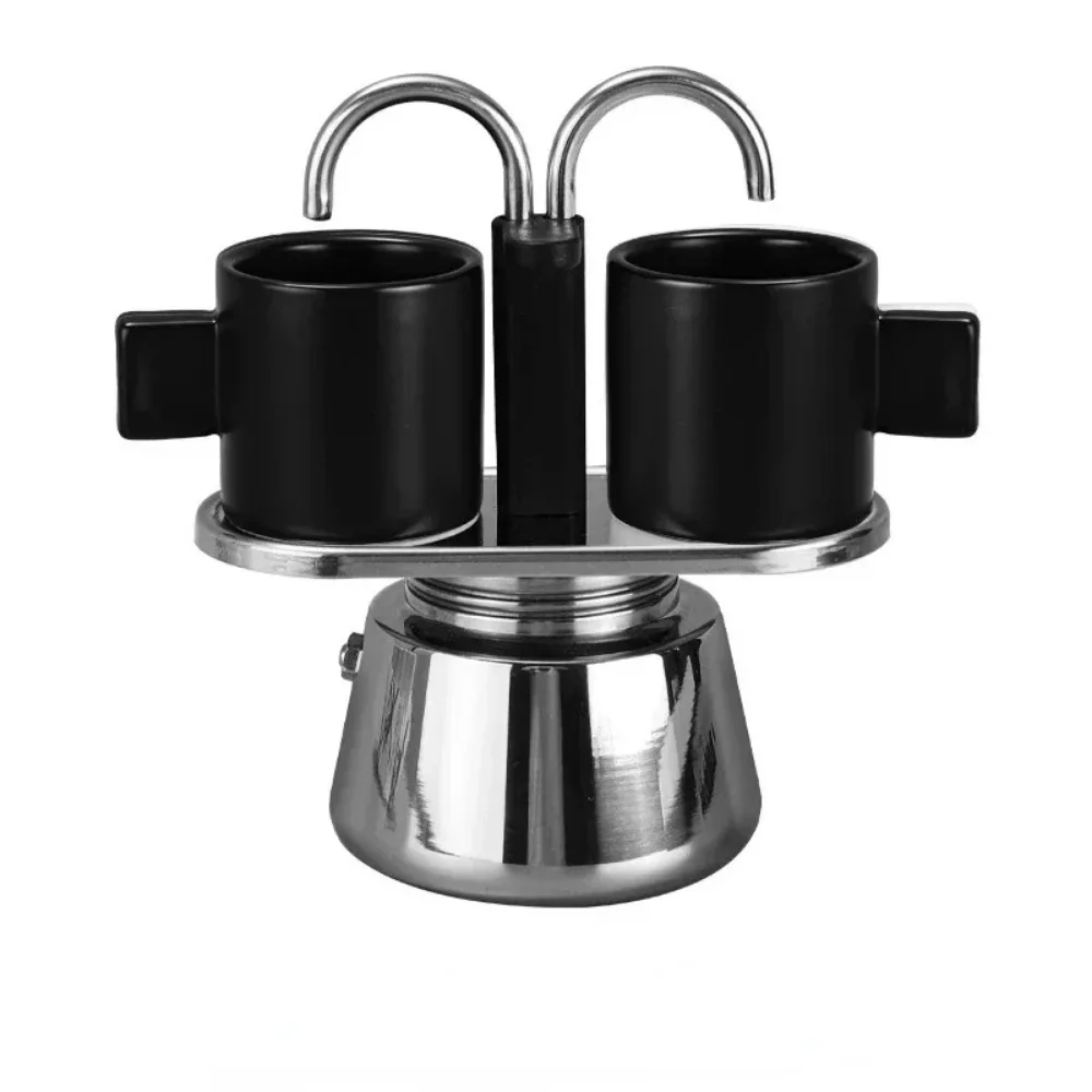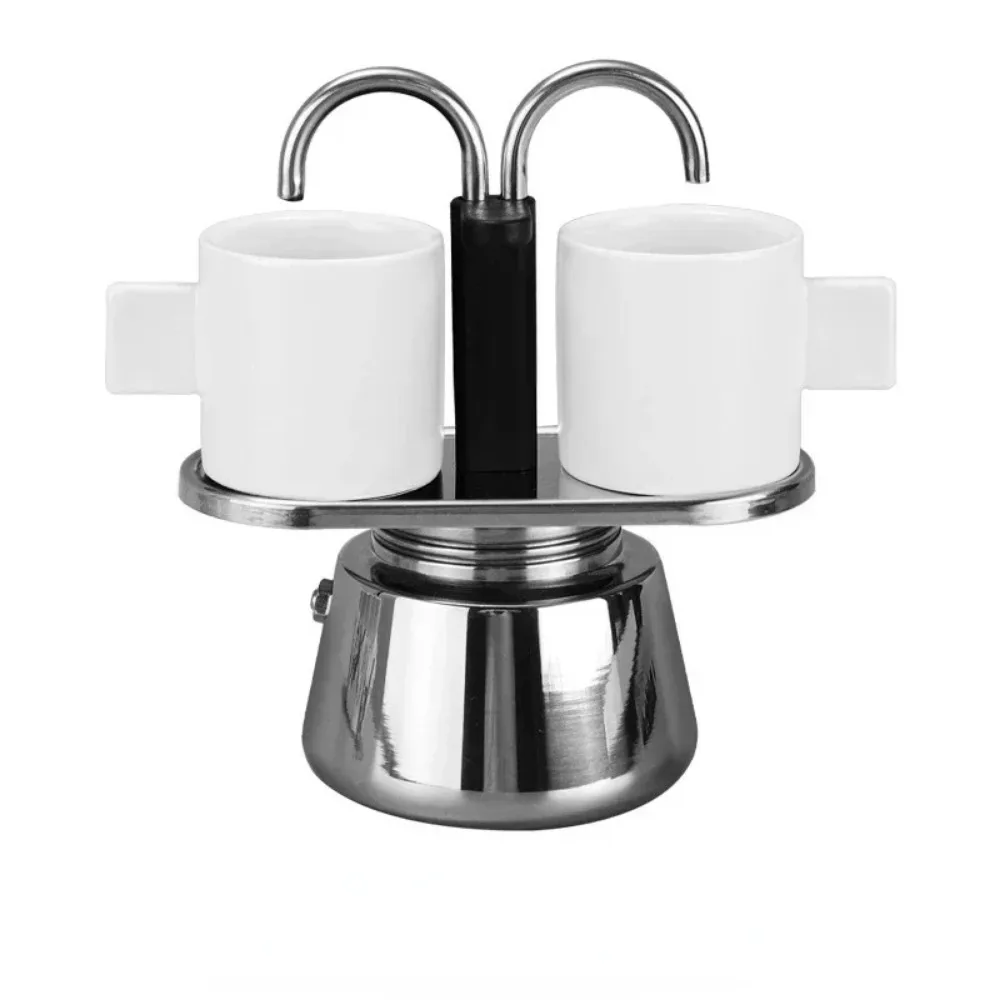 Mini 100ml Moka Pot Double Tube Coffee Pot Stainless Steel Italian Coffee Maker Espresso Utensils Kettle Electric Stove Heating