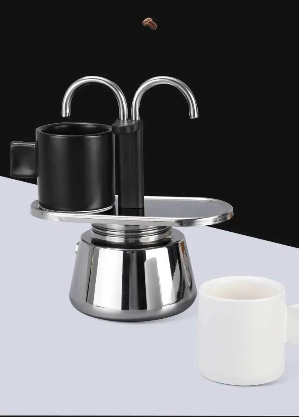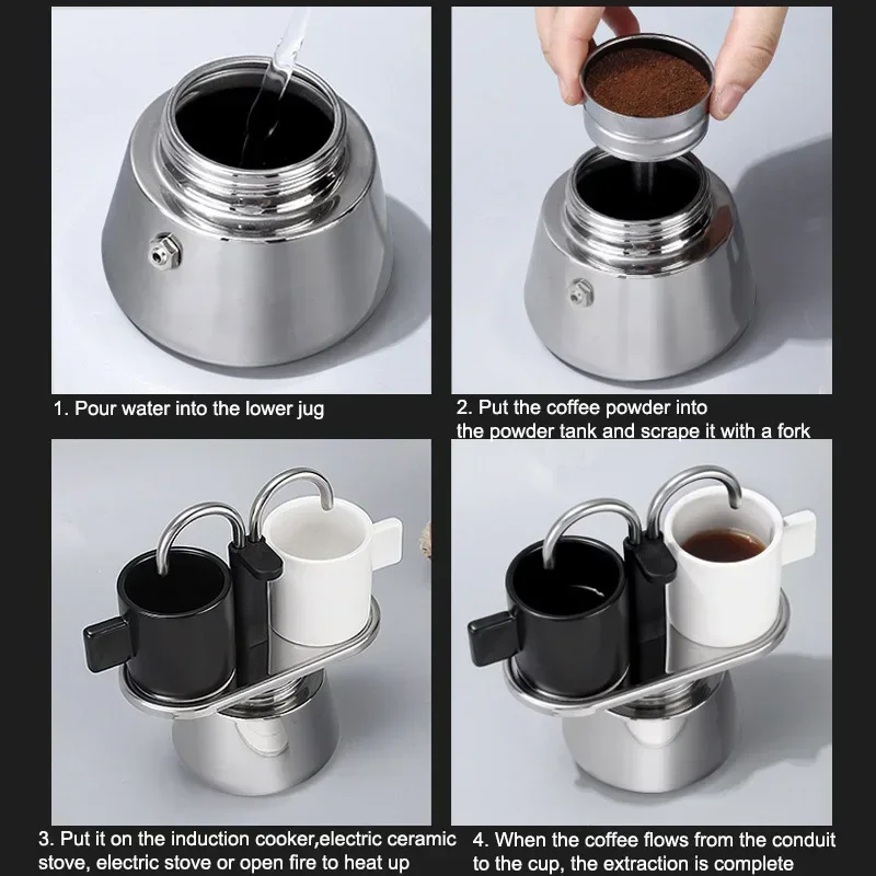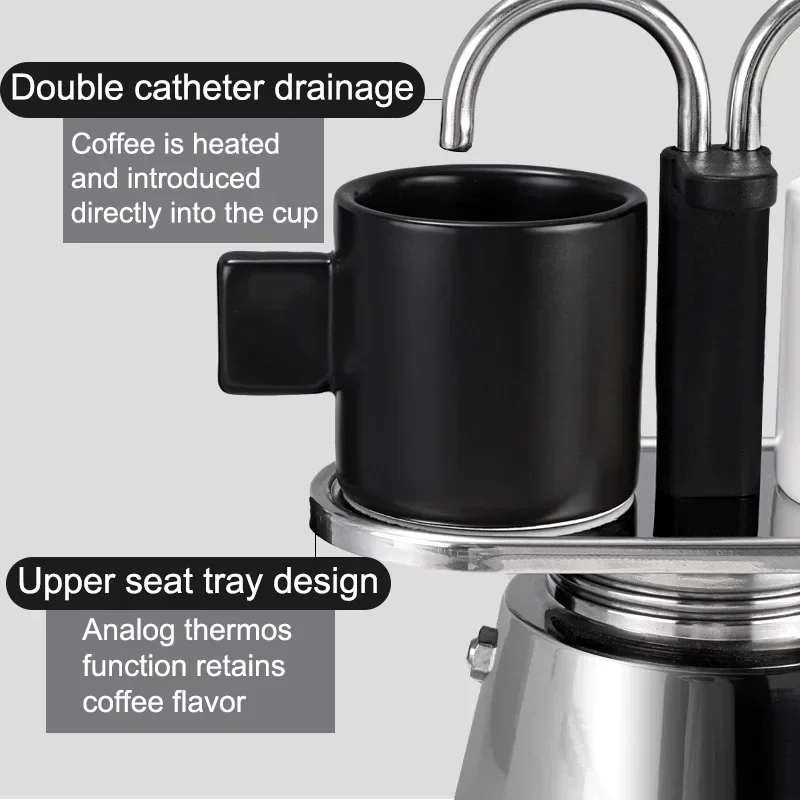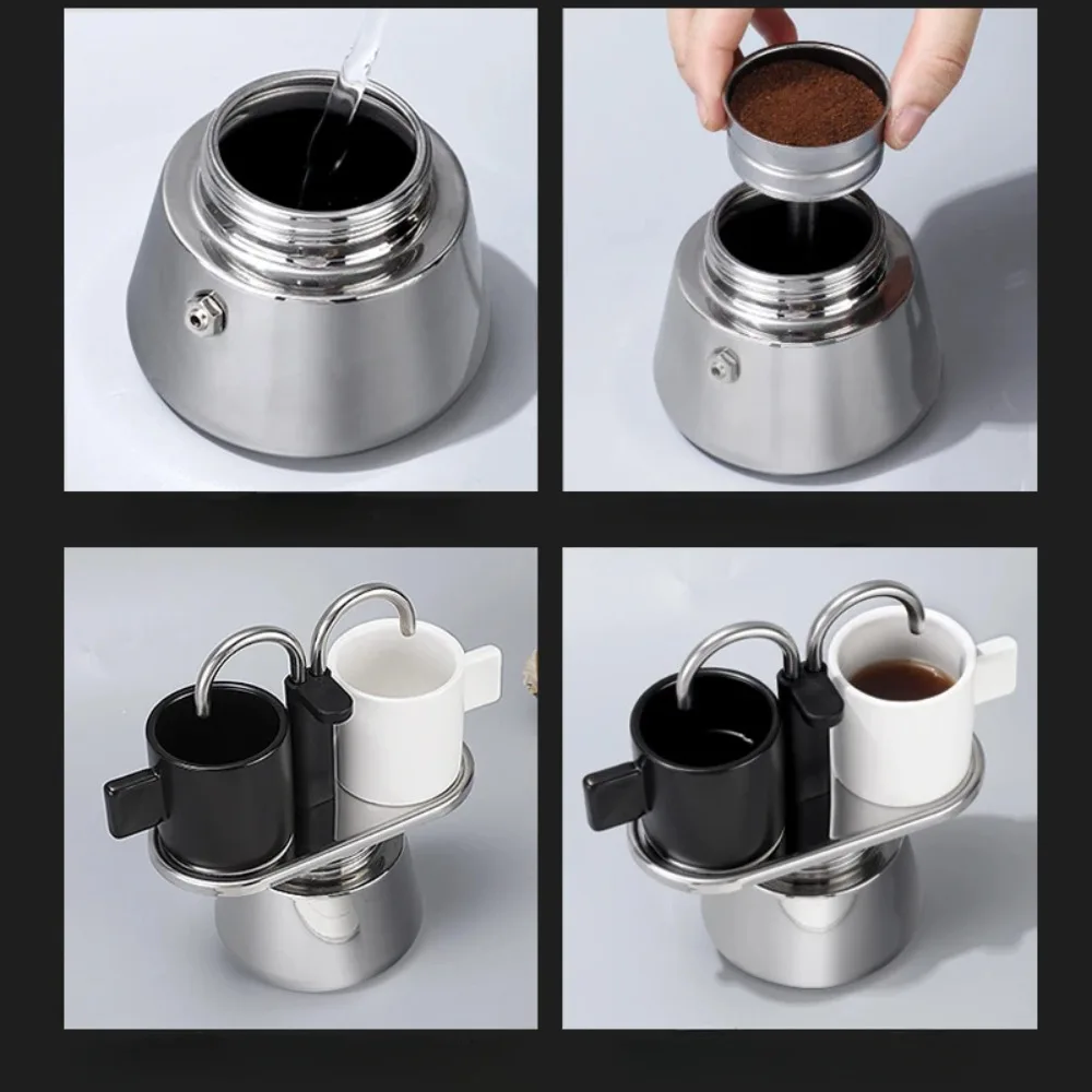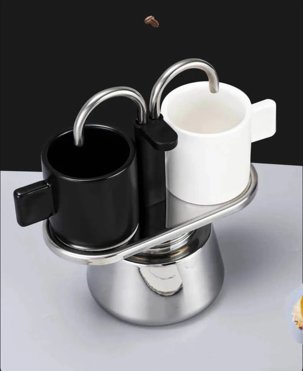 Mini 100ml Moka Pot Double Tube Coffee Pot Stainless Steel Italian Coffee Maker Espresso Utensils Kettle Electric Stove Heating
