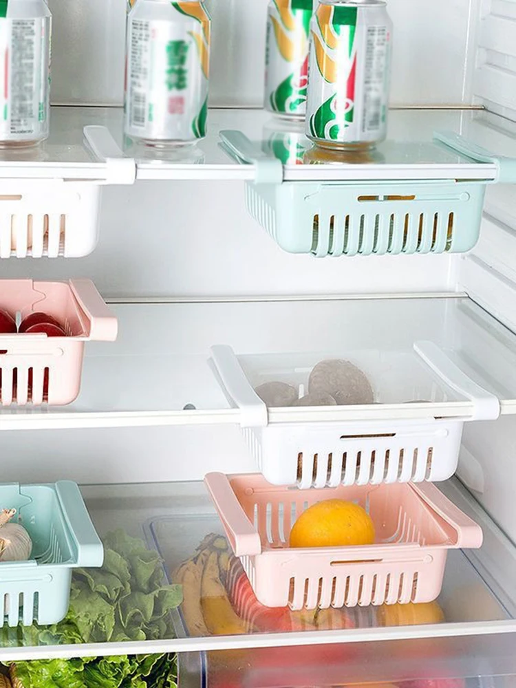 Multi Functional Refrigerator Storage Basket, Retractable Refrigerator Partition Storage Rack, Kitchen Drain
