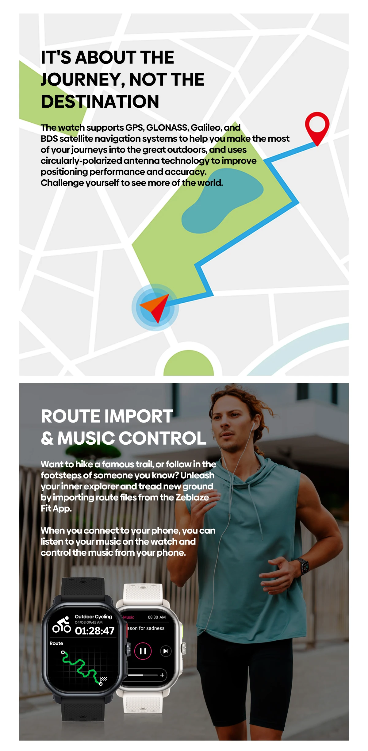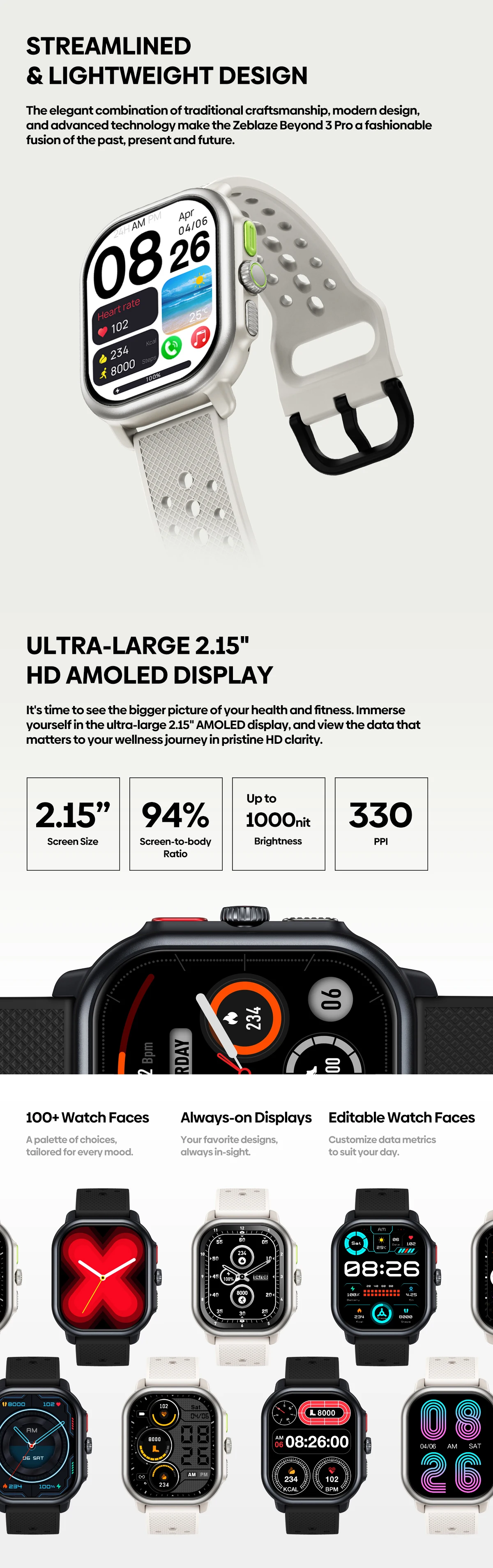 New Zeblaze Beyond 3 Pro GPS Smart Watch Built-in GPS & Route Import 2.15″ AMOLED Display Make/Receive Phone Calls Smartwatch