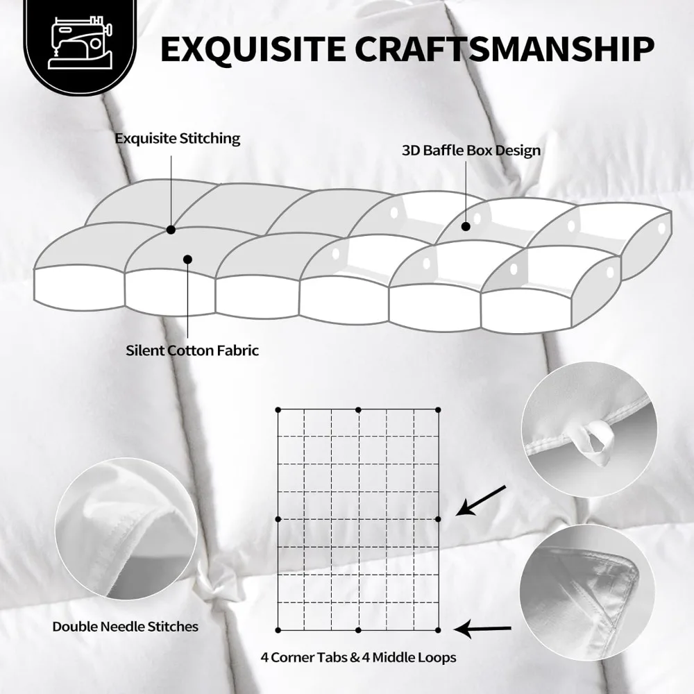 Extreme soft, breathable, hypo-allergenic & Allergy Free. Double-stitch design to prevent down leakage.
