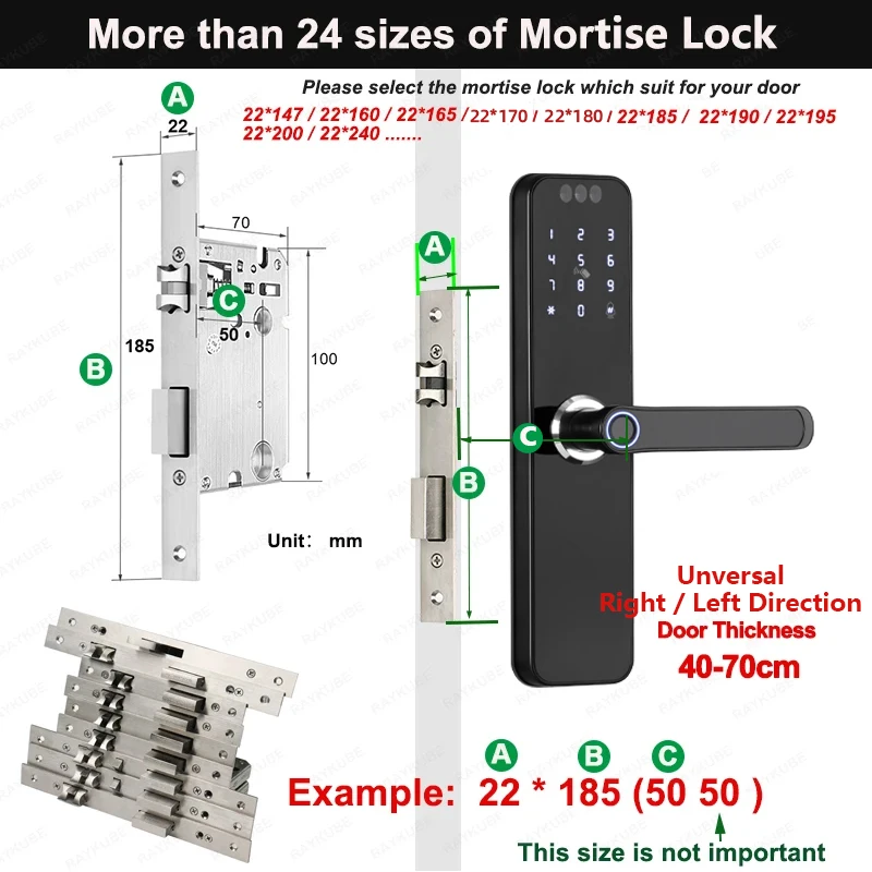 We have over 24 different mortise lock size for choose, so please measure the old lock size follow this picture that you would know which size suit for your door. (once you select the correct size, you will very easy to replace the old lock)