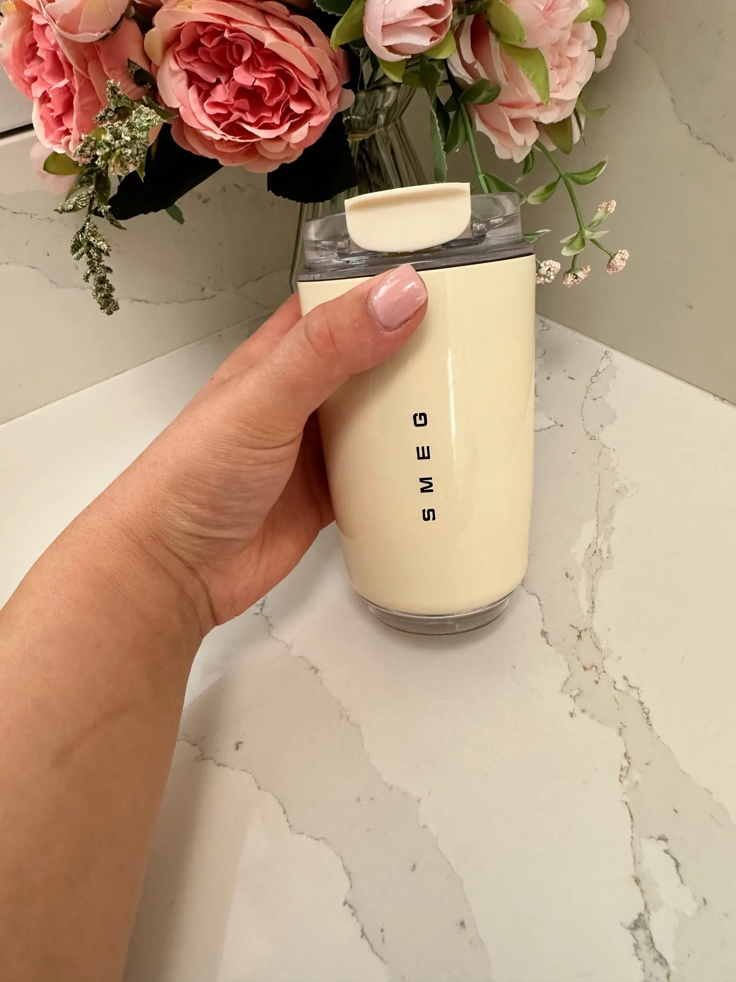 The white Smeg beverage cup is simply stunning! It’s clean, modern, and elegant—perfect for any occasion. The glossy finish makes it feel extra special, and the design is so well made that you can tell they really thought through every detail. It’s lightweight yet solid, and it’s quickly become my go-to cup. I can’t wait to grab another one soon!