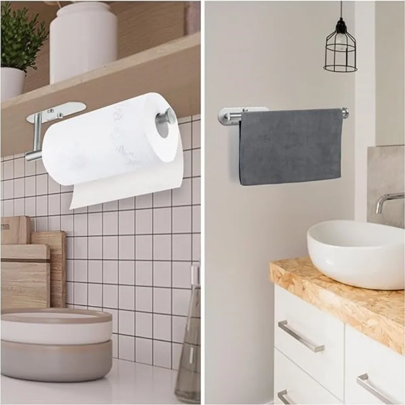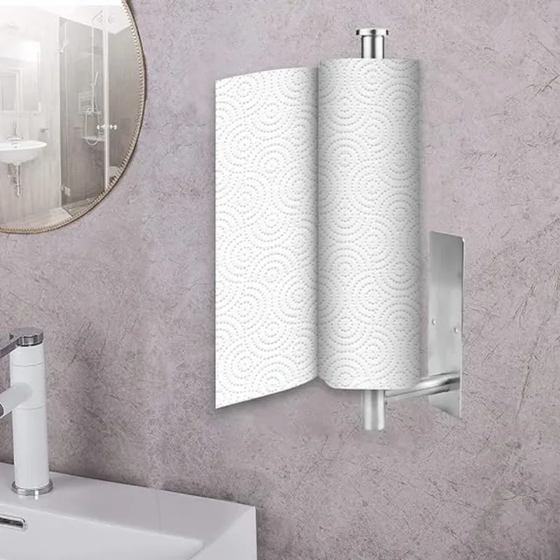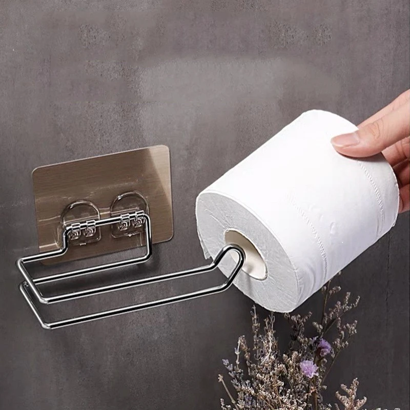 Stainless Steel Paper Towel Holder Without Punching Wall-Mounted Kitchen Roll Holder Toilet Paper Holder Bathroom Towel Rack