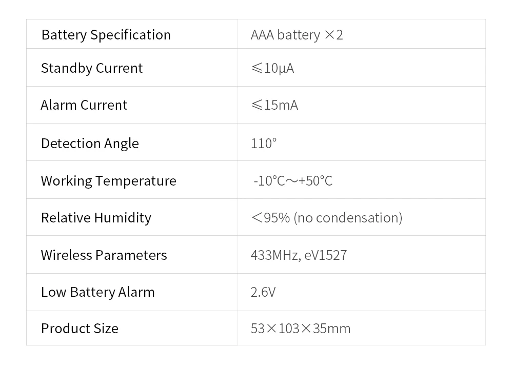 | Pet Friendly Design | Pets under 4-15kg will not trigger the alarm |