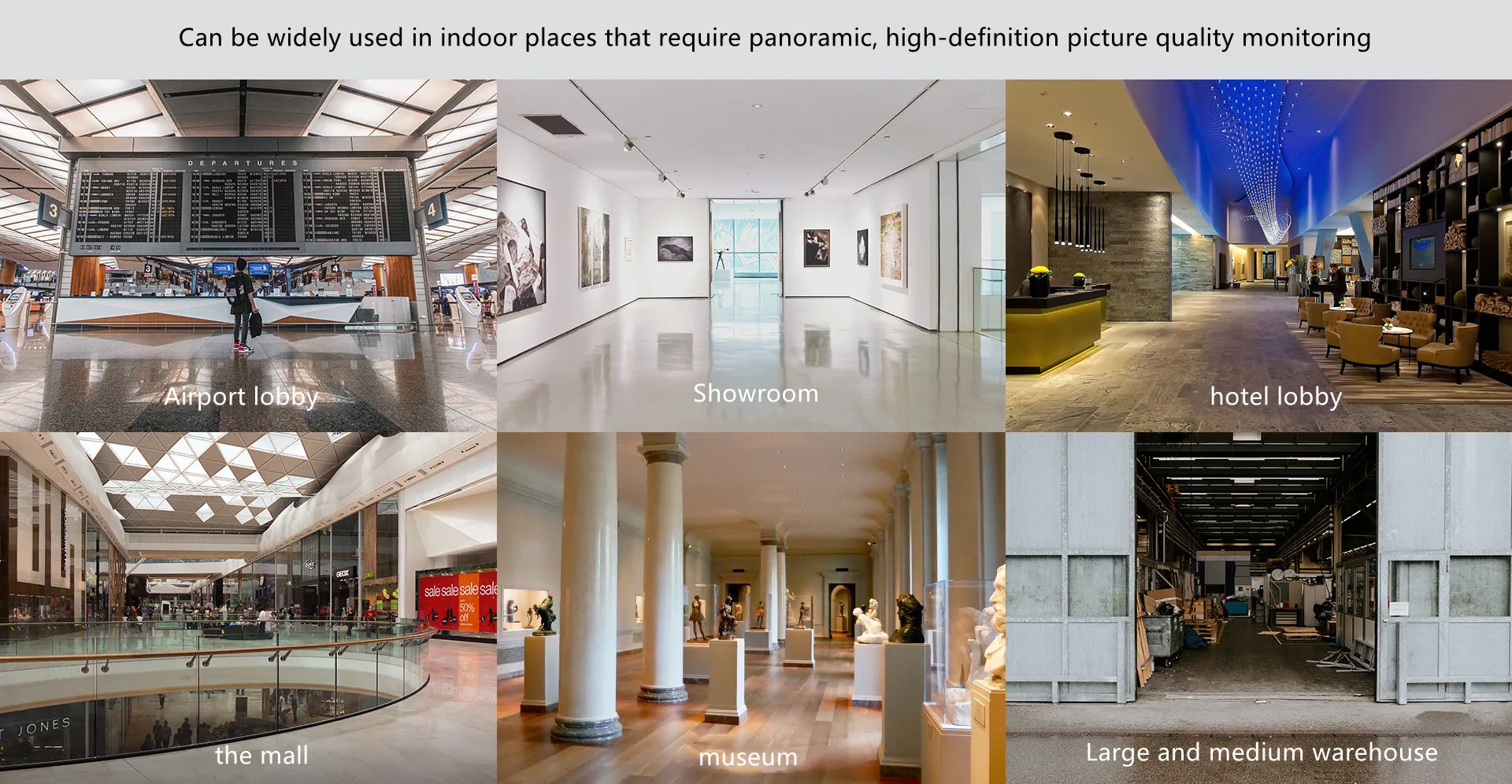 It can be widely used in indoor places that require panoramic and high-definition picture quality monitoring.Born for professions, matching professional places.Such as a museum.Key cultural relics need to be protected. Warning lines are set in the panoramic image in advance. Once the personnel cross the boundary, the PTZ camera can quickly link to capture close-up details.