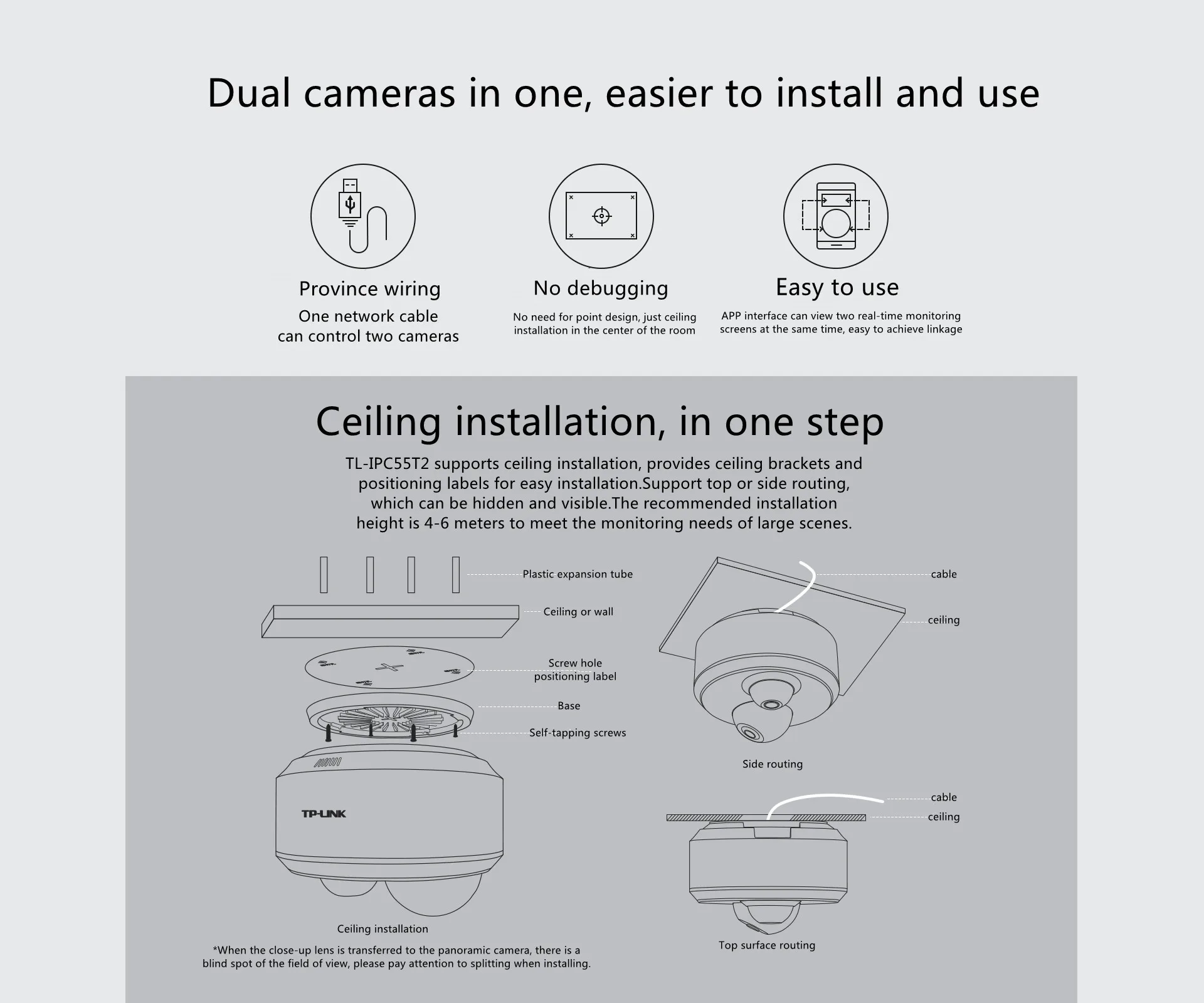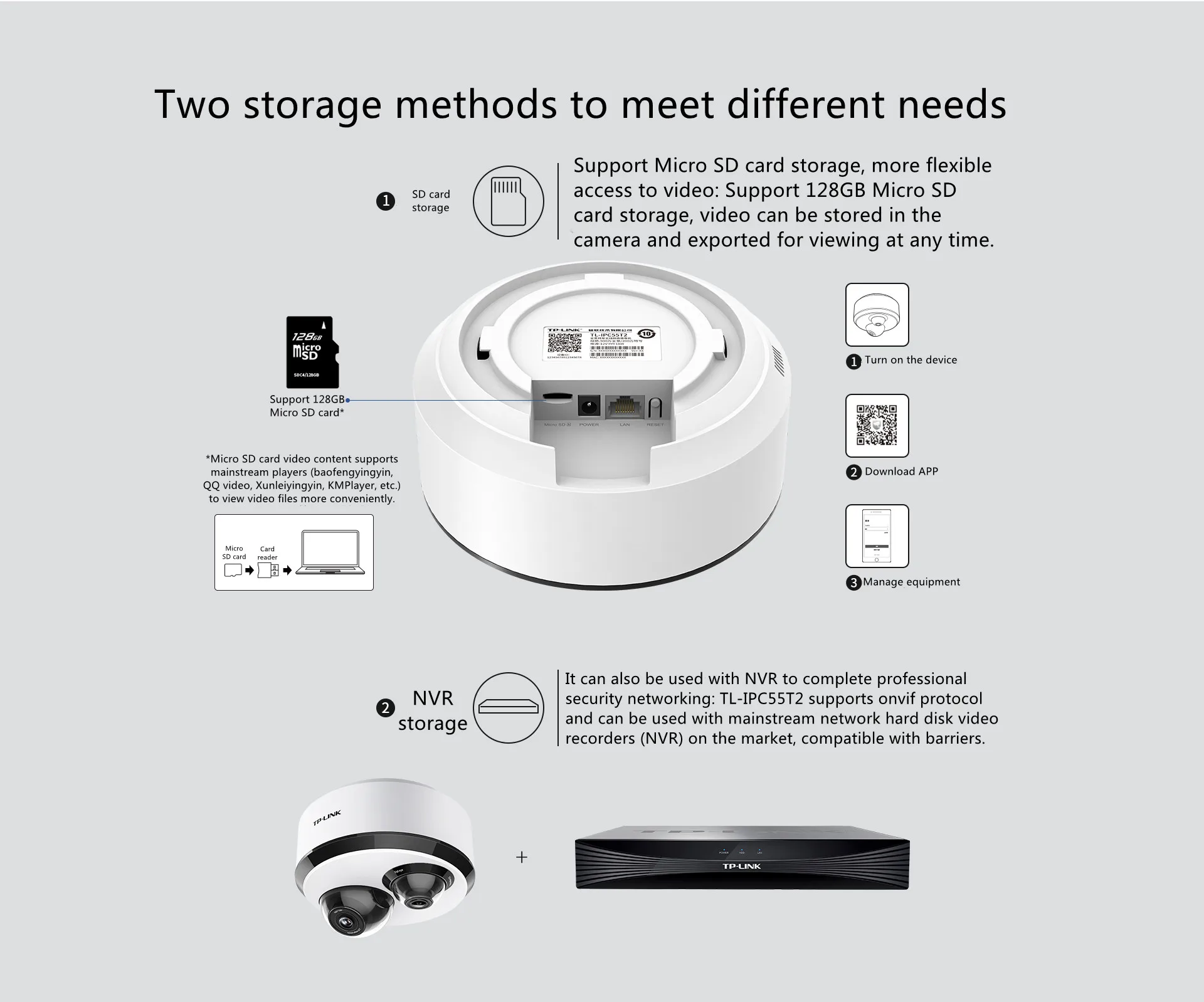 Tp-link camera Panoramic view ip camera Surveillance camera wireless network IPC55T2 panoramic view + close-up Chinese Version