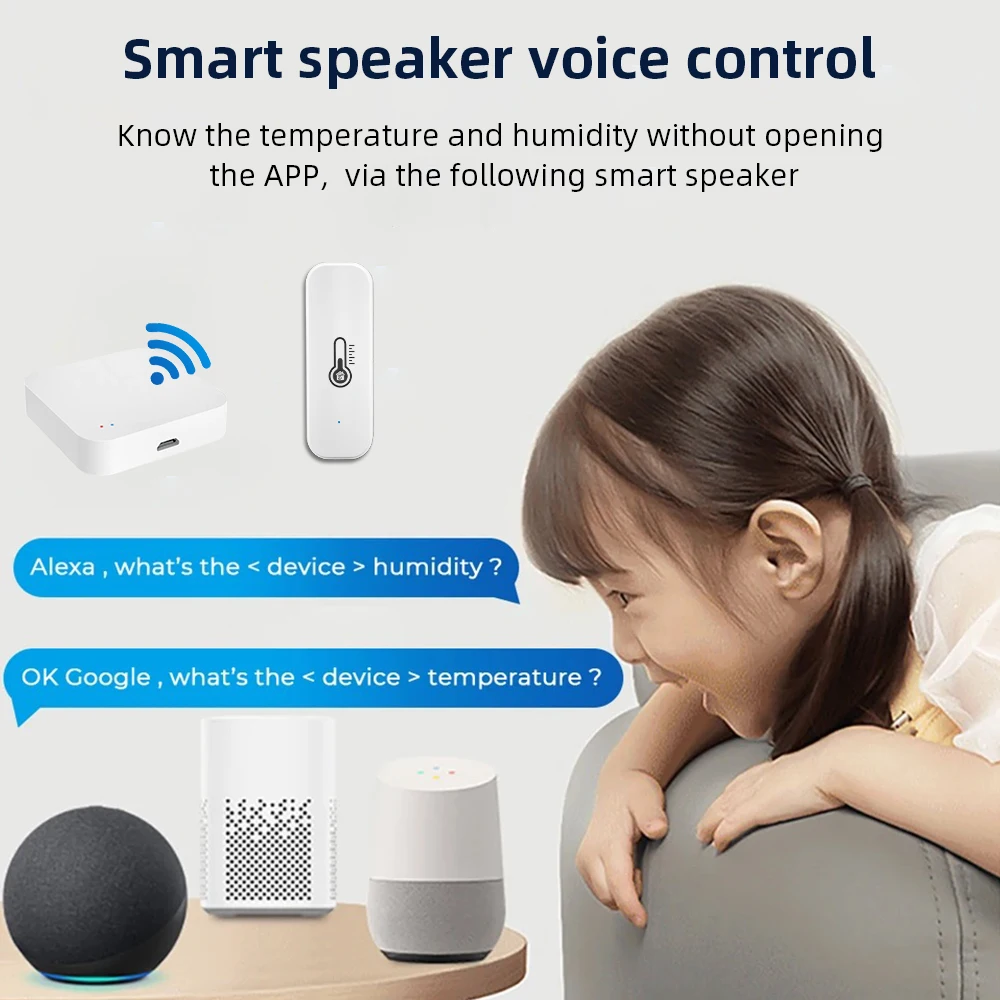 The sensor supports Amazon Alexa, Google Home Ass is tant. You can check the current temperature and humidity by voice.