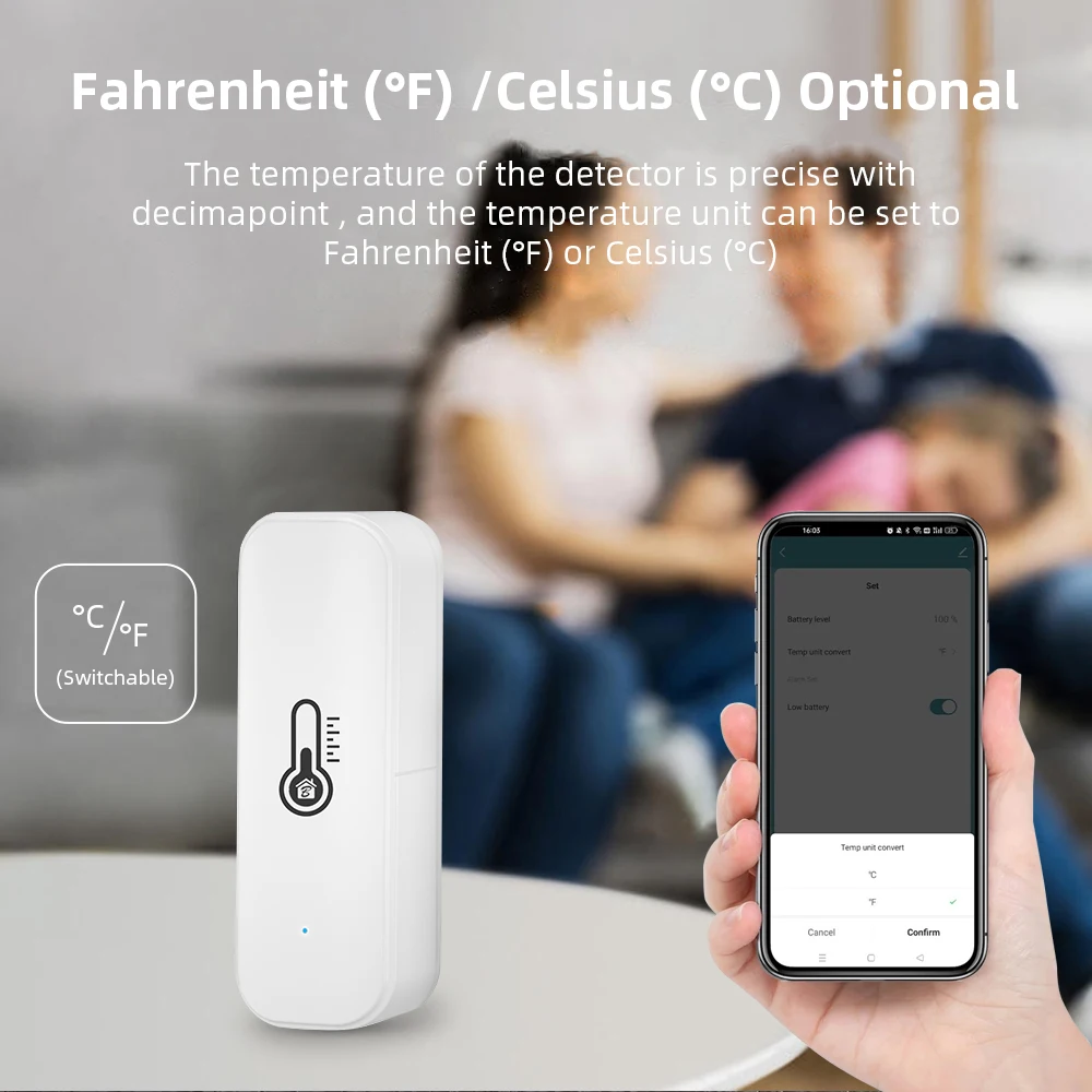 The sensor can be used as the temperature and humidity data source of Tuya Smart/Smart Life . You can do many automated processes based on the data source.