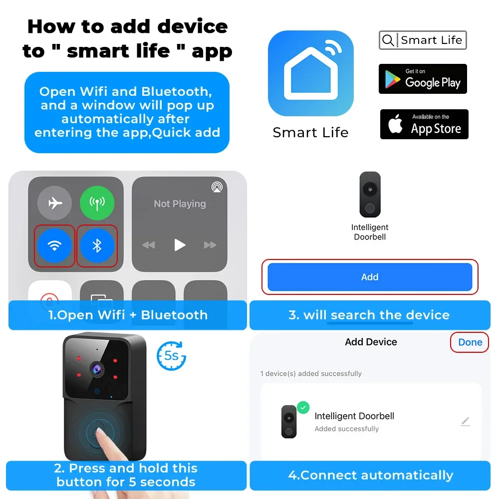 Tuya WiFi Video Doorbell Wireless HD Camera IR Alarm Security Night Vison Voice Talk Smart Home Door Bell WiFi Intercom for Home