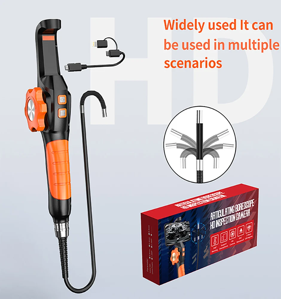 Two-Way Articulated Endoscope Inspection Camera with 6.4mm Tiny Lens 1080P HD Borescope Camera for Automotive Plumbing Car