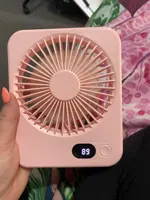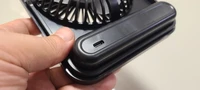 It’s stronger than you think! It’s cool. I had a lot of sweat on my face every time I ate, so I needed a tabletop charging fan, which is very appropriate. The battery feels a little bit small but… Good because it is wireless and Type C charging.