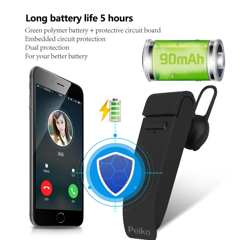 5.Listen Longer:Built-in 90mAh rechargeable lithium battery,ensures super endurance,support playing for up to 5-8 hours,talking for up to 4.5 hours.