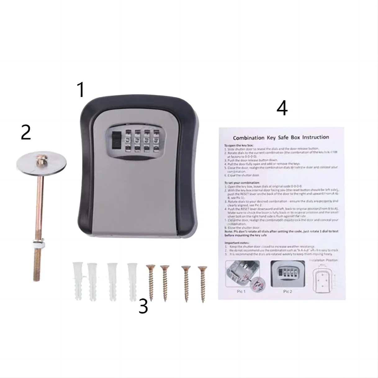 Wall Mount Key Lock Box 4 Digit Password Code Security Lock No Key for Home Office Key Safe Secret Storage Box Organizer