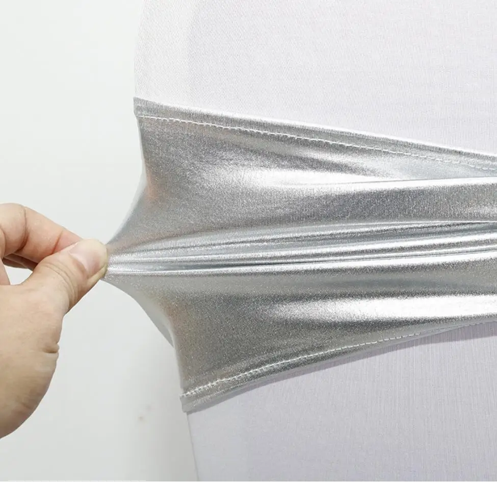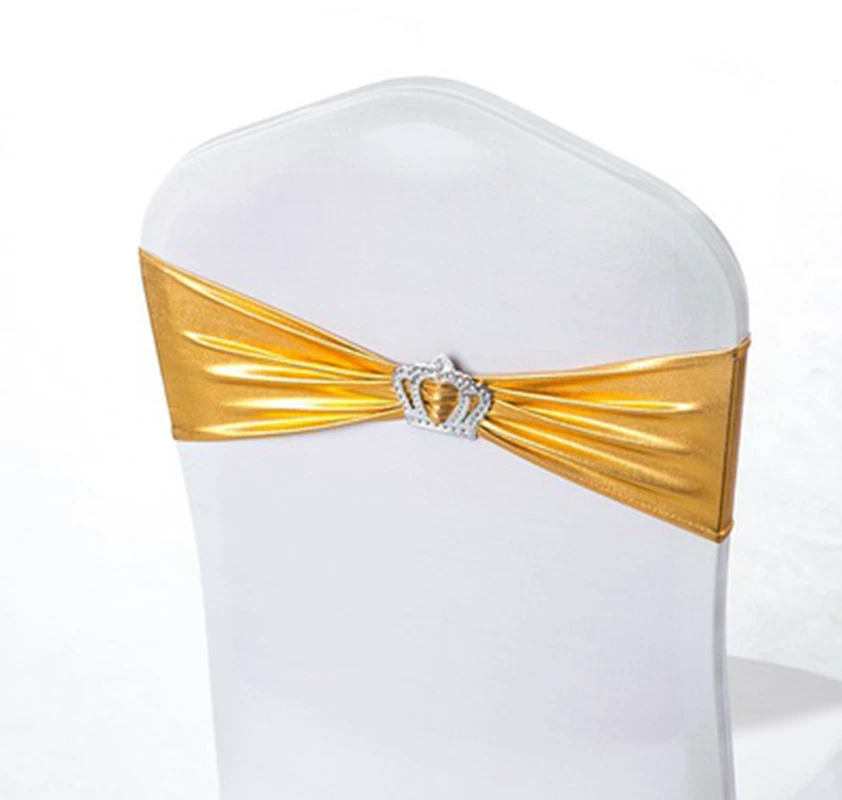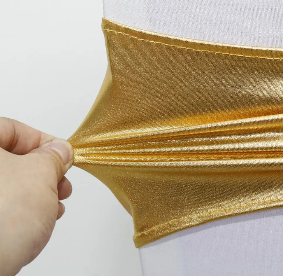 Wedding Decoration Spandex Chairs Sash Shiny Metallic Gold Silver Bow With Round Buckle For Birthday Party Hotel Banquet Luxury
