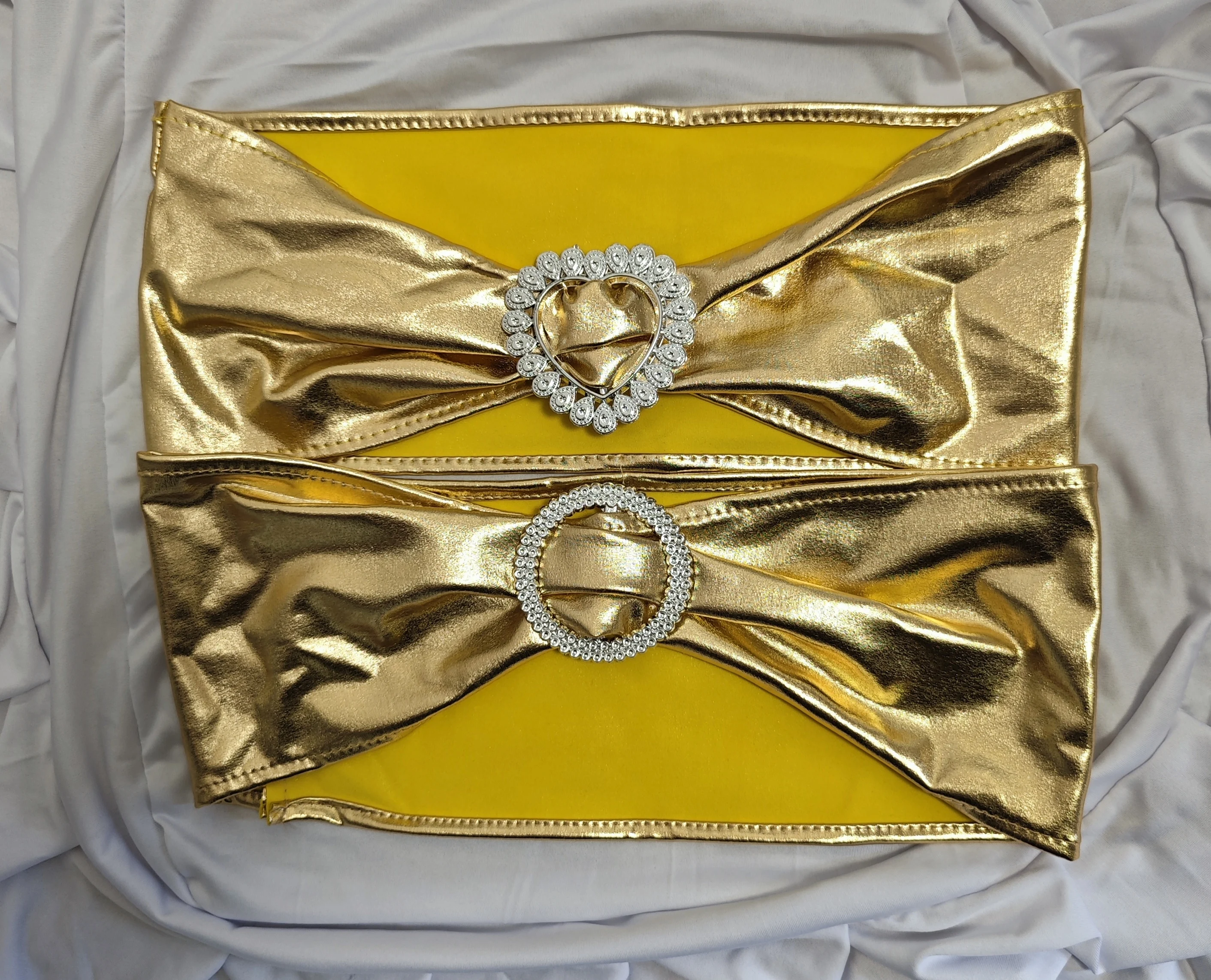 hot sale shiny metallic sash/ band/ shiny ribbon with round buckle,spandex chair sashes for wedding