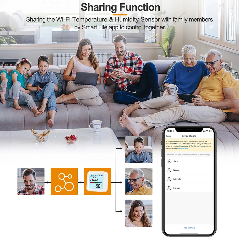 You can share your added devices with your family members, so they can also monitor the ambient environment.