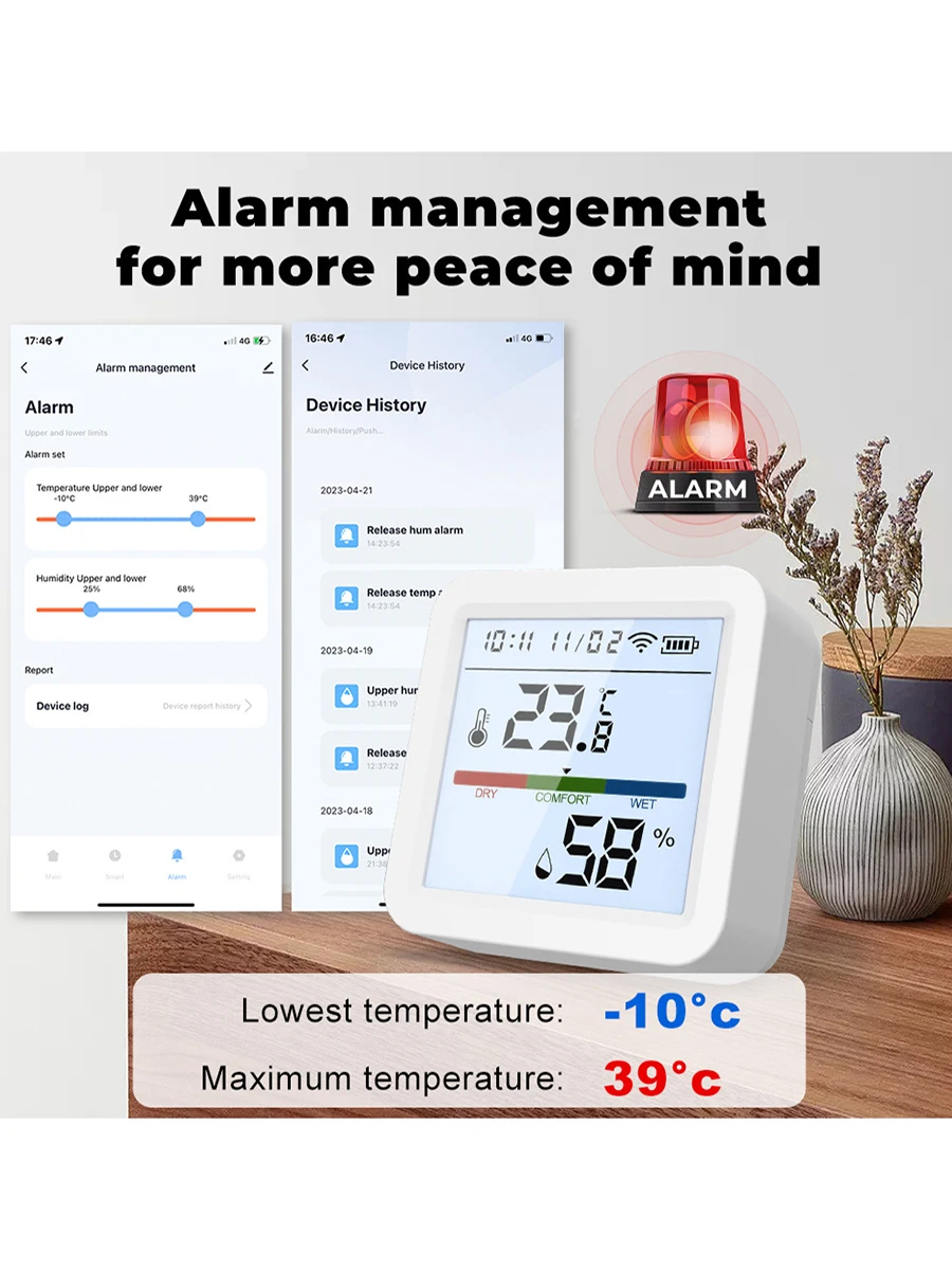 Record the temperature and humidity changes on the APP, and present it to you with graphics. More intuitive to let you know the recent data changes.