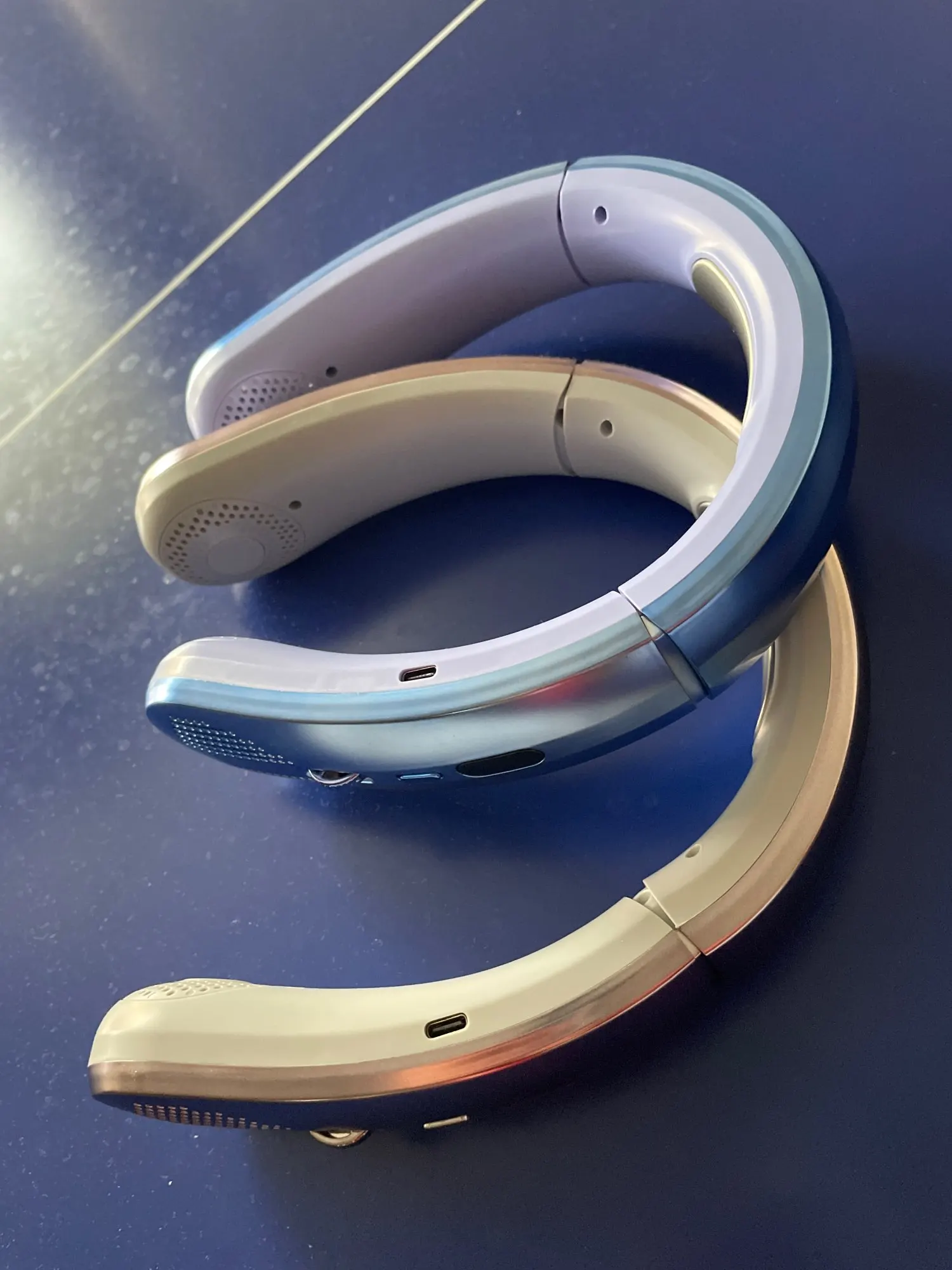 Overall, this seems to be a nice product. I like that there are a lot of airspeed adjustments and that there are many holes for the air to flow through. It pushes a decent amount of air, and I’m sure it will help my husband to keep cool while working in the yard in the summer months. I think it’s nice that there are hinges on each side to get it on your neck more easily. It looks high-end and feels sturdy. That it is rechargeable is a plus. Like others mentioned, it is kind of noisy, but any fan that pushes a decent amount of air isn’t going to be silent. This shipped quickly. My only complaint is that this was shipped directly in the box that it comes in, no outer shipping box, bag, etc. Fortunately, the box only got a little dented at one corner, and the bubble wrap inside the box was enough to keep the neck fan safe. Also, this is one of the Christmas gifts for my husband, and this being shipped directly in the box that clearly shows what’s in it very nearly ruined the surprise.