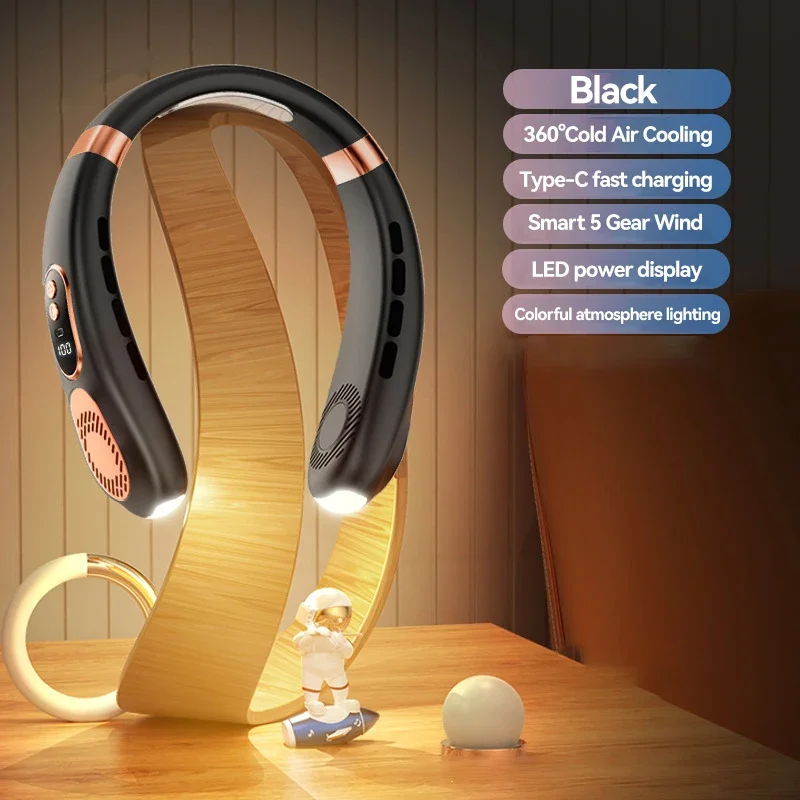 Xiaomi Portable Mini Bladeless Hanging Neck Fan USB Handheld Mute LED Digital Display Electric Fan Colorful Atmosphere Lights